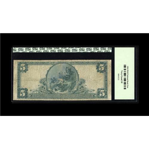 <B>Corsicana, TX</B></I> - $5 1902 Plain Back Fr. 599 <B>The First NB </B></I> Ch. #(S)3506<BR>This was the first of the four banks located here to receive its charter and one of two to issue the $5 Plain Back. <B>PCGS Very Good 10.</B></I>