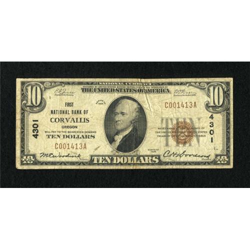 Corvallis, OR - $10 1929 Ty. 1 The First NB Ch.