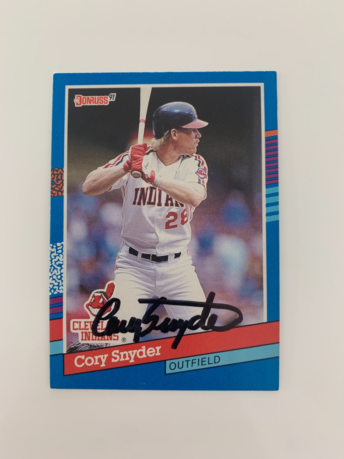 Cory Snyder signed baseball card. Donruss 1991. 2x3 inches