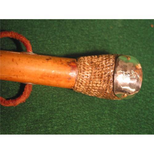 English Georgian Cosh (Club) Malacca cane with weighted handle and silver eyelets. Cartouche of mounted Polo Player. c.1830 Length 36ins
