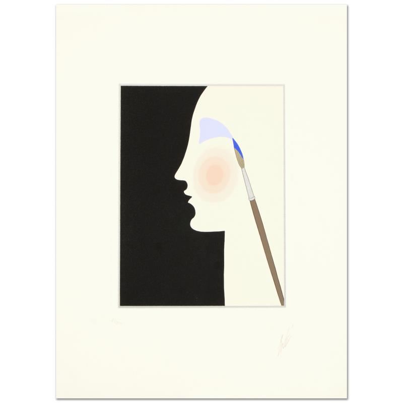 "Cosmetic Brush" is a limited edition serigraph on paper by Erte (1892-1990), numbered and hand signed by the artist. Includes Certificate of Authenticity. Measures approx. 15.5" x 20" (border), 9" x 12" (image). Due to the age of this piece and the delicate nature of the paper it may have some slight imperfections.