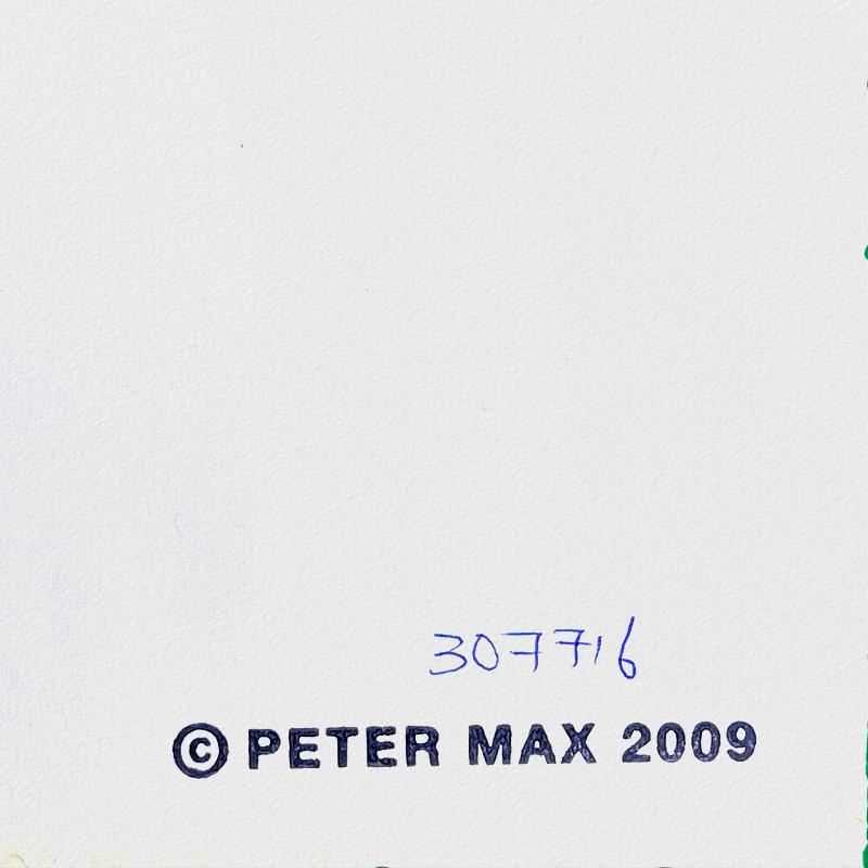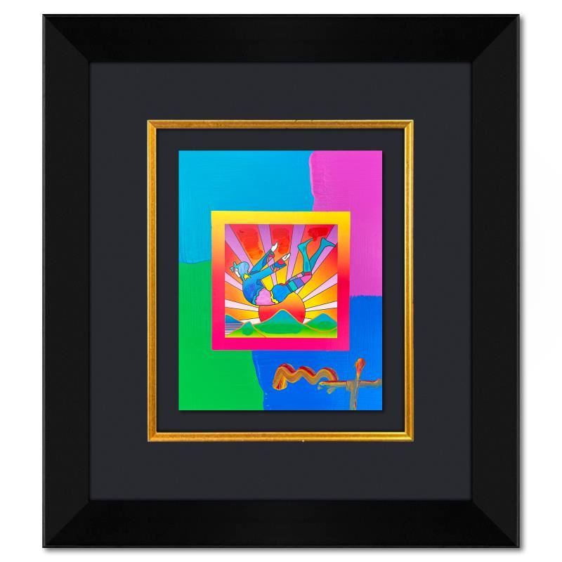 "Cosmic Flyer" is a hand signed one-of-a-kind acrylic mixed media on paper by Peter Max. The piece comes custom framed with a backside cutout to display Peter Max Studio registration number 307716 certifying authenticity. Measures approximately 26" x 23" (frame), 13" x 10" (image). This item requires special handling and may have a longer than usual turnaround.