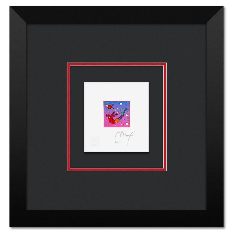 "Cosmic Flyer in Space Ver. II" is a limited edition lithograph on paper by Peter Max, numbered and hand signed by the artist. This piece comes framed. Includes Certificate of Authenticity from Peter Max Studios. Measures approx. 14" x 13.5" (frame), 5" x 4.5" (image). This item requires special handling and may have a longer than usual turnaround.