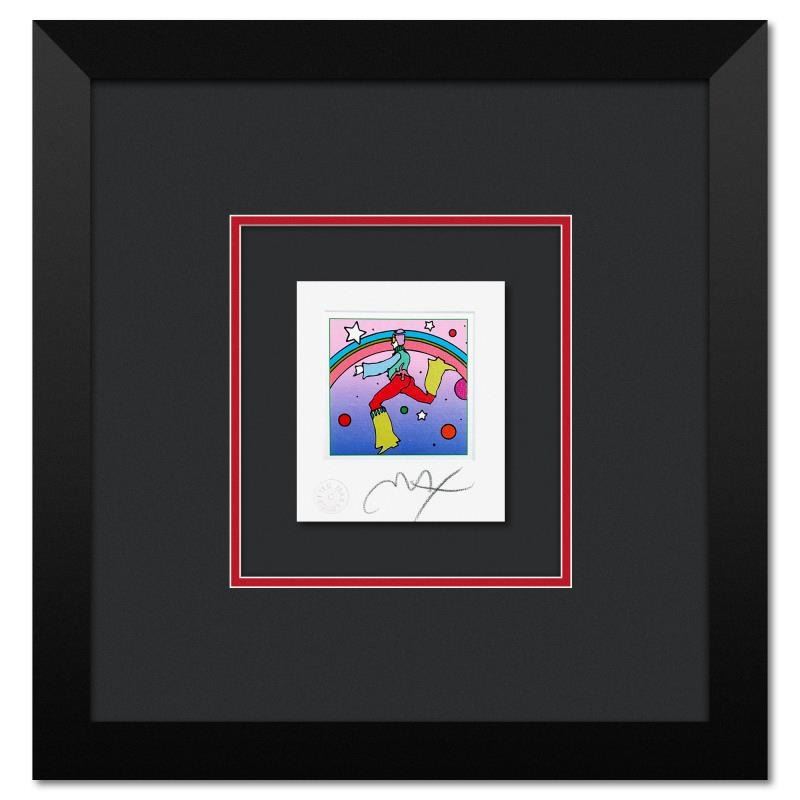 "Cosmic Flyer in Space" is a limited edition lithograph on paper by Peter Max, numbered and hand signed by the artist. This piece comes framed. Includes Certificate of Authenticity from Peter Max Studios. Measures approx. 13.5" x 13" (frame), 3.5" x 3" (image).