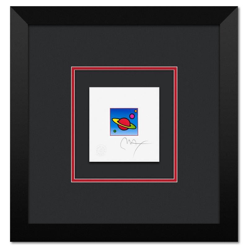 "Cosmic Saturn II" is a limited edition lithograph on paper by Peter Max, numbered and hand signed by the artist. This piece comes framed. Includes Certificate of Authenticity from Peter Max Studios. Measures approx. 15" x 14.5" (frame), 5" x 4.5" (image).