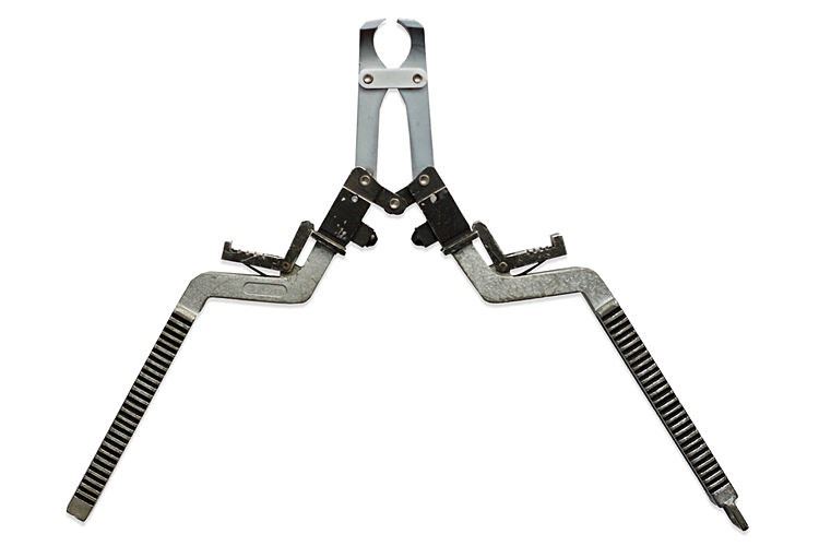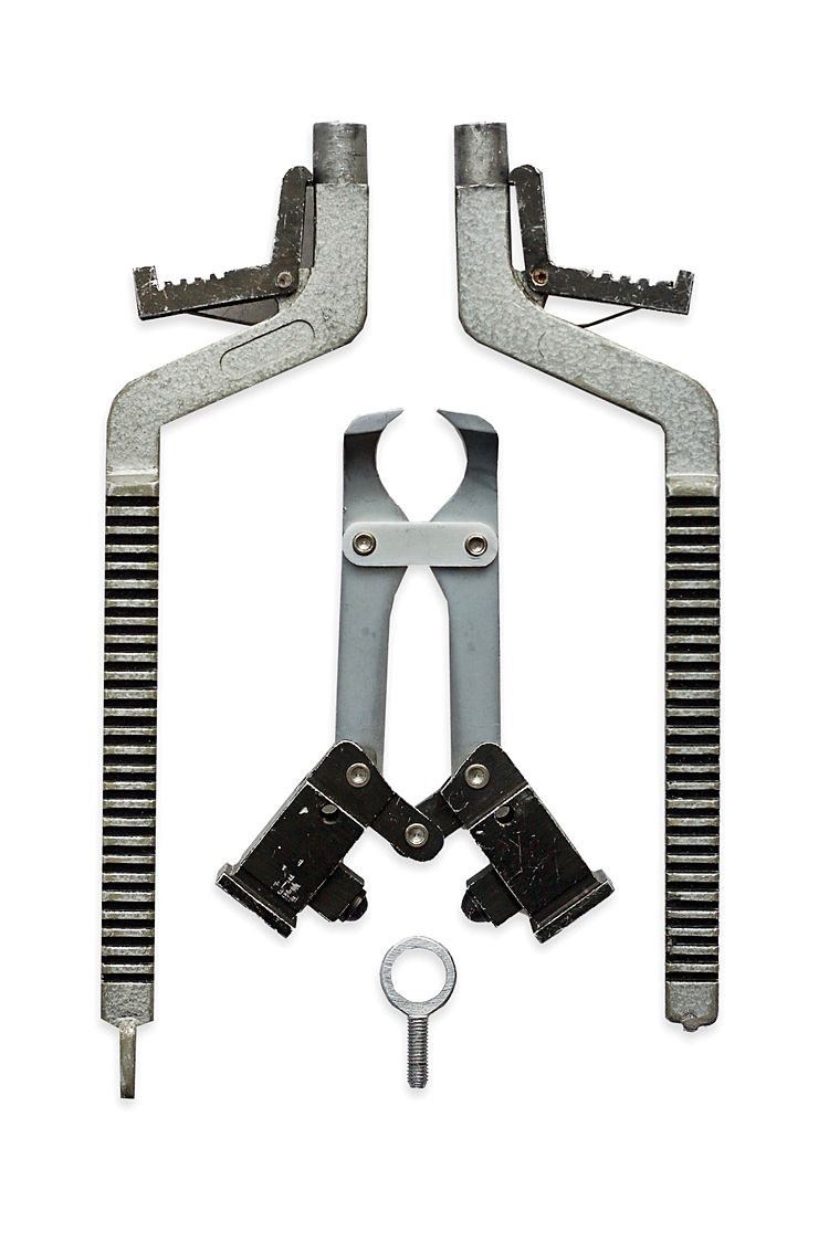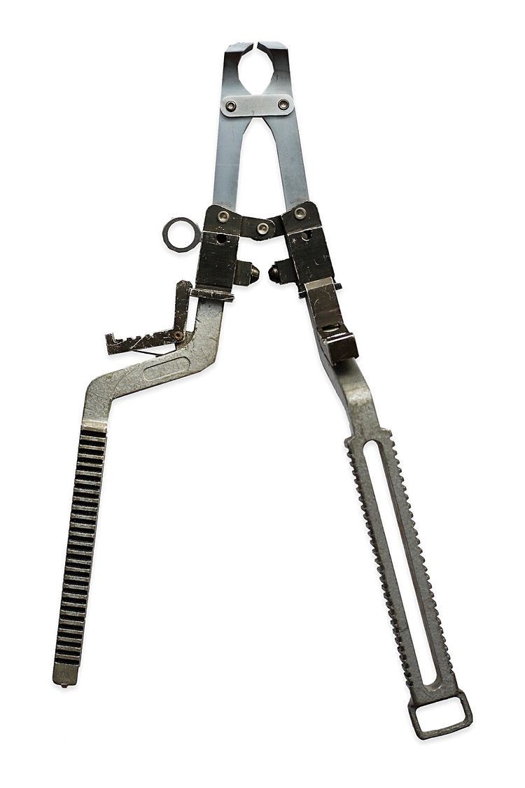 Impressive flown wire cutters used by cosmonauts during EVA work in orbit, measuring approximately 15.25? x 8.5?, this custom tool features large handles with grooved indentations that allow for easy use with gloved hands. The long legs provide torque and the head can be separated from the leg assembly for use with other tool heads. In fine condition, with expected wear from use. A decidedly rare and imposing space artifact.