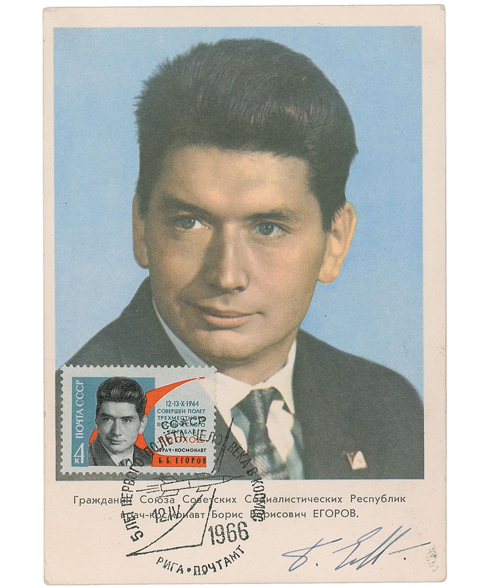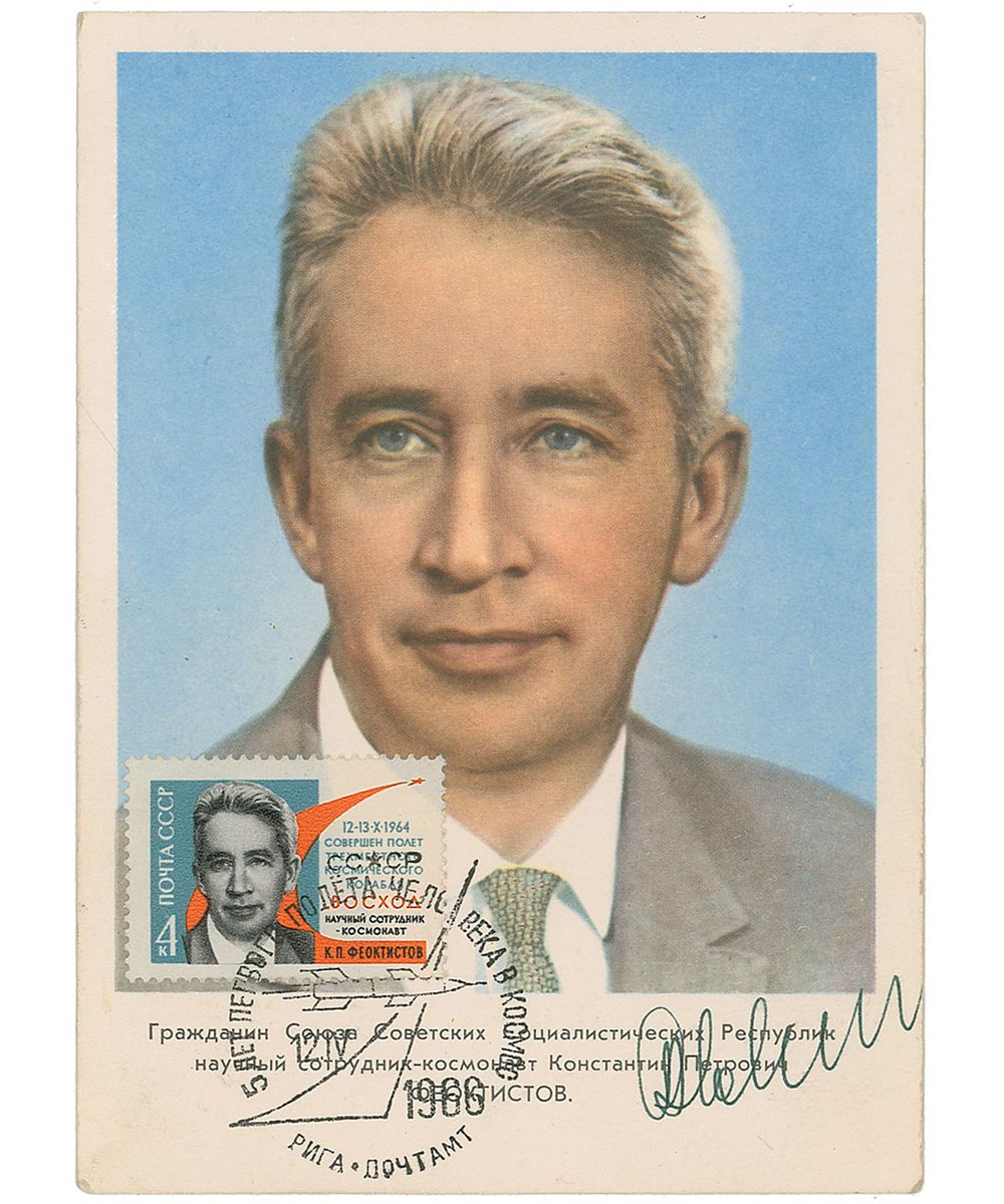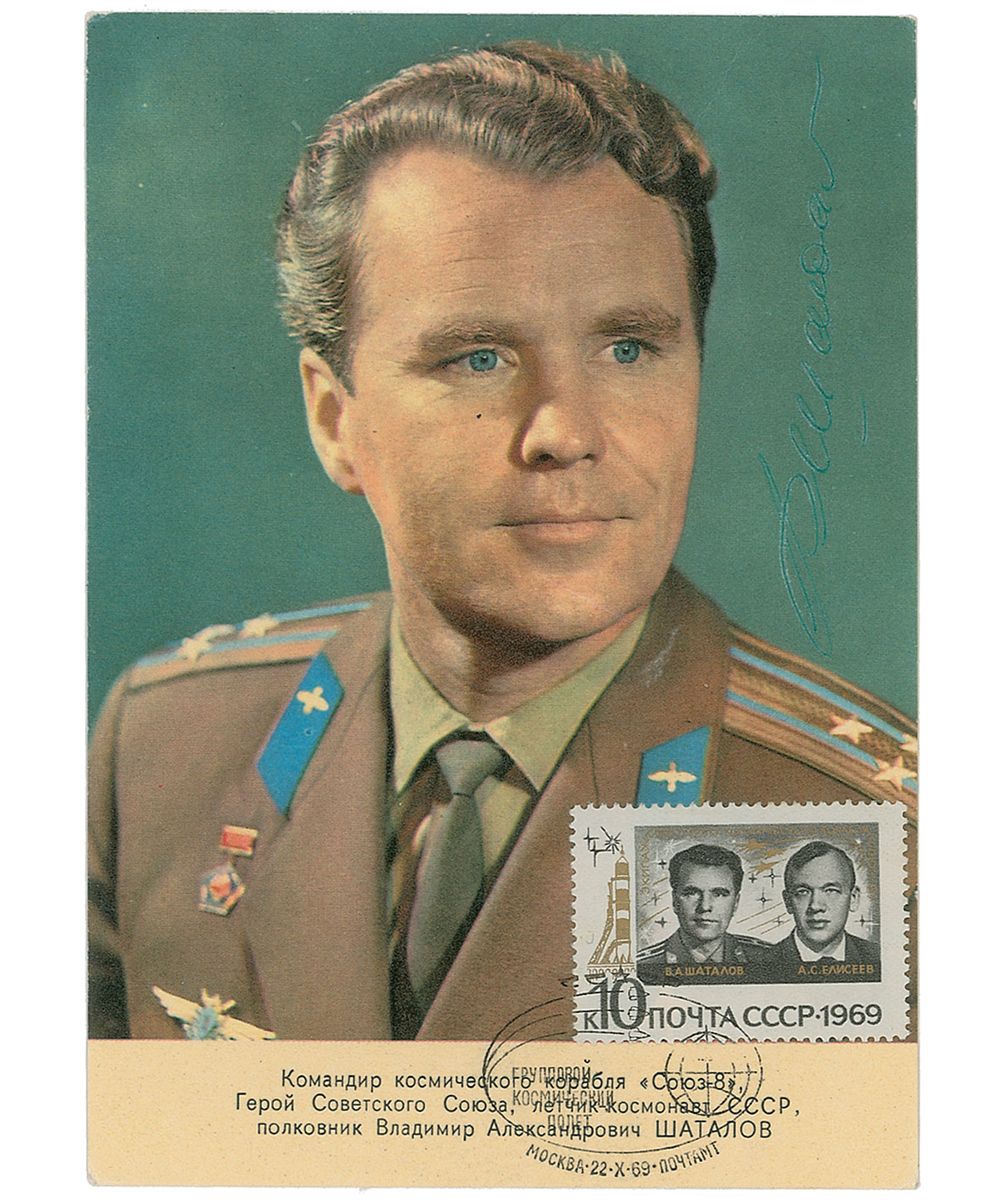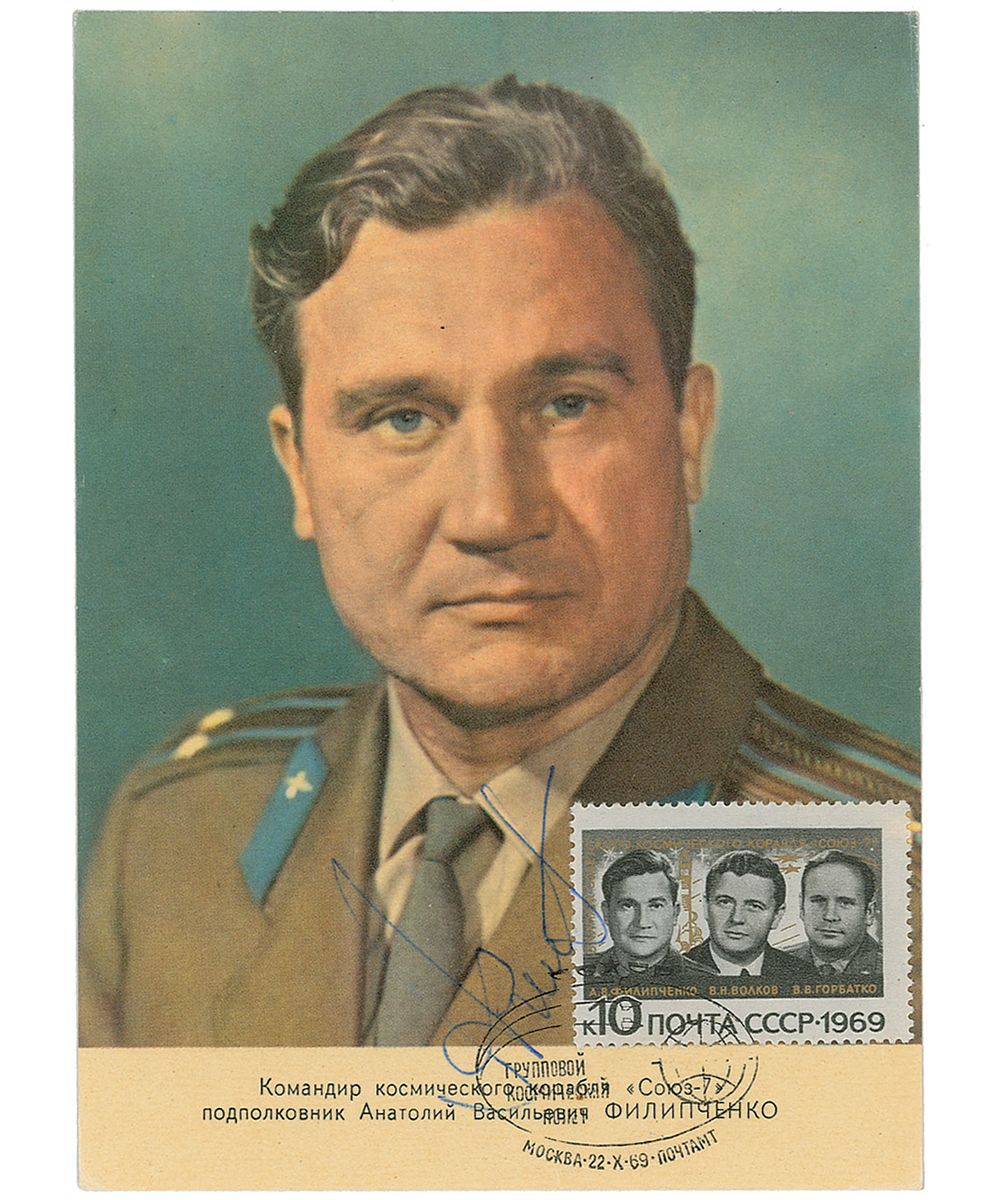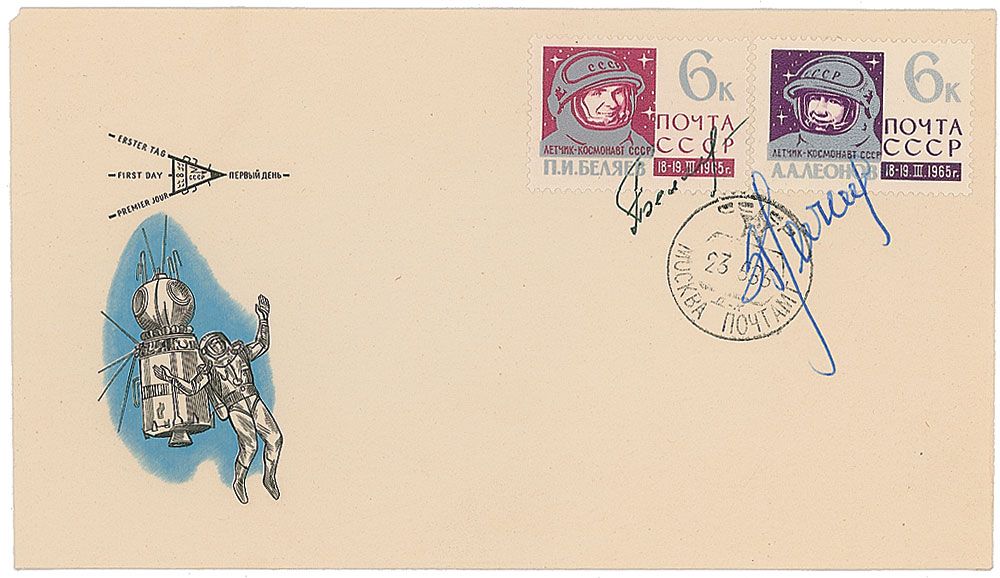 Amazing collection of 25 Kniga covers and 19 postcards, each signed by a cosmonaut. Kniga covers include: Yuri Gagarin; Gherman Titov; Valery Bykovsky; Andriyan Nikolayev; Pavel Popovich; Valentina Tereshkova; Pavel Belyayev and Alexey Leonov; Vladimir Komarov, Konstantin Feoktistov, and Boris Yegorov; Georgy Beregovoy; Vladimir Shatalov and Aleksei Yeliseyev; Vladimir Shatalov, Boris Volynov, Aleksei Yeliseyev, and Yevgeny Khrunov; Georgy Shonin and Valeri Kubasov; Anatoly Filipchenko, Vladislav Volkov, and Viktor Gorbatko; Vasili Lazarev and Oleg Makarov; Pyotr Klimuk and Valentin Lebedev; Pavel Popovich and Yuri Artyukhin; Gennadi Sarafanov and Lev Dyomin; Aleksei Gubarev and Georgi Grechko; Pyotr Klimuk and Vitaly Sevastyanov; Anatoly Filipchenko and Nikolay Rukavishnikov; Viktor Gorbatko and Yuri Glazkov; Andriyan Nikolayev and Vitaly Sevastyanov; Boris Volynov and Vitaly Zholobov; Vyacheslav Zudov and Valery Rozhdestvensky; and Alexey Leonov and Valeri Kubasov. Signed postcards include: Aleksei Yeliseyev; Valeri Kubasov; Viktor Gorbatko; Vladislav Volkov; Nikolay Rukavishnikov; Georgy Beregovoy; Vladimir Shatalov; Aleksei Yeliseyev; Boris Volynov; Yevgeny Khrunov; Alexey Leonov; Vladimir Shatalov; Georgy Shonin; Andriyan Nikolayev; Vitaly Sevastyanov; Valery Bykovsky; Konstantin Feoktistov; Valentina Tereshkova; and Boris Yegorov. In overall fine to very fine condition. An incredible instant collection of rarely seen items.