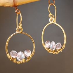 Metal: GoldIvory pearls wrapped inside a hammered circle, about 1-1/4" long. Available in either 14K gold-filled, rose gold-filled, or sterling silver. All jewelry is entirely handmade in our studio in New York. ________________________________________________________________________________________ For matching designs, see: