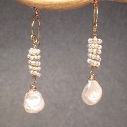 Metal: GoldClusters of tiny ivory pearls with coin pearl drop, about 1-1/2" long.Available in either 14K gold-filled, rose gold-filled, or sterling silver. All jewelry is entirely handmade in our studio in New York. ________________________________________________________________________________________ For matching designs, see: