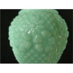 Blue custard shakers.  Cosmos Stemless Daisy by Consolidated Lamp & Glass Co.  1898-1905.  3.5" tall.  Condition:  Only 1 lid.  Glass is in very good condition.