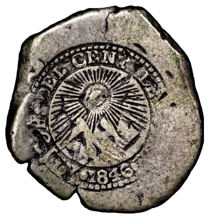 Costa Rica, 1 real, 1846 JB counterstamp (Type IV) on a Potosi, Bolivia, cob 1 real, date and assaye