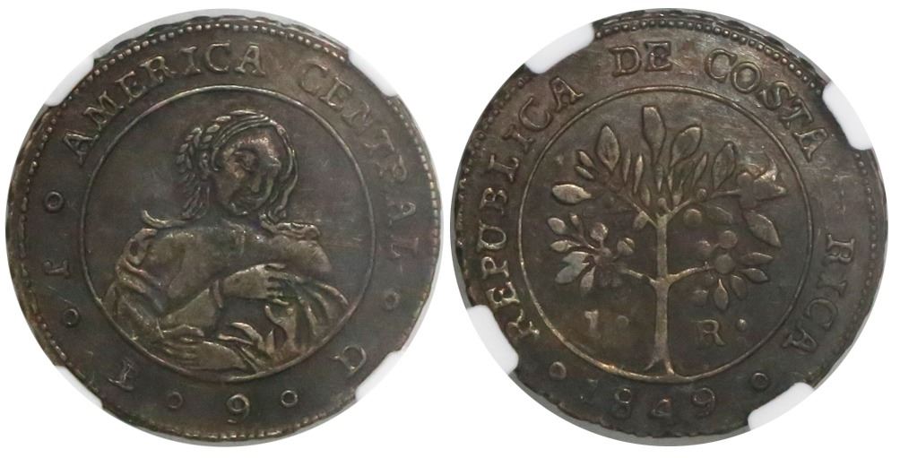 Costa Rica, 1 real, 1849J, encapsulated NGC AU 55.