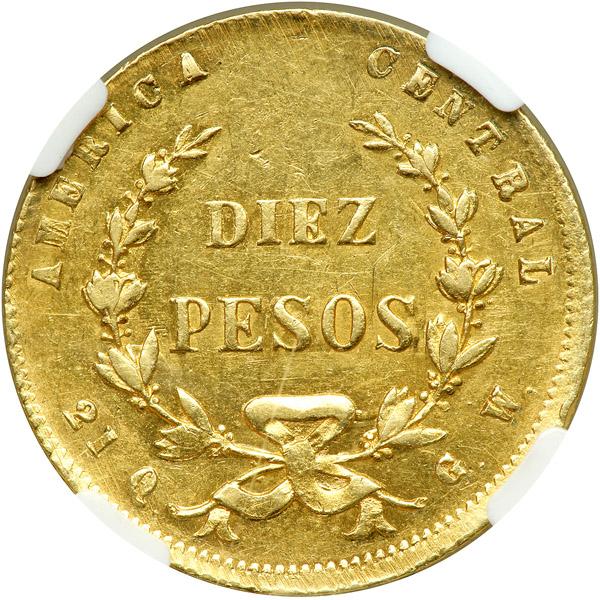 Costa Rica. 10 Pesos, 1872-GW. NGC EF45