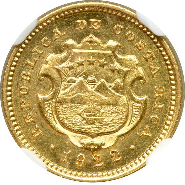 Costa Rica. 2 Colones, 1922. NGC MS65