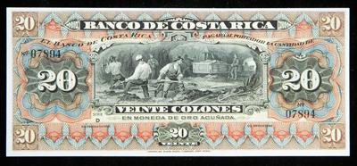 Costa Rica. 20 Colones, 1901. P-S175r. Bank of Costa Rica. Unsigned remainder. Series D. Miners at center. By ABC, New York. Uncirculated.