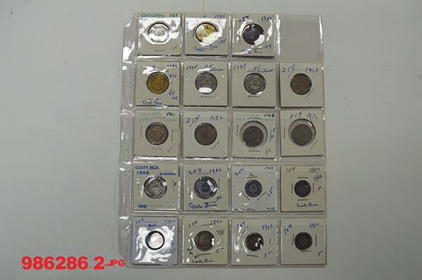 Costa Rica. Just a few silvers, some large some very small. Two tokens included as well as a 1975 3 pieces Uncirculated set. Generally Very Fine. Just over 110 pieces.