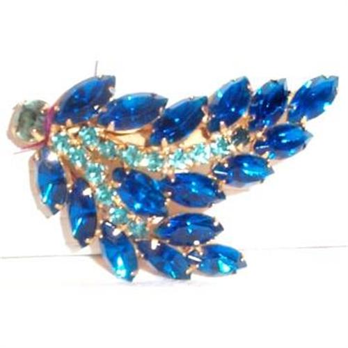 This extremely STUNNING Blue Rhinestone Brooch is in SUPERIOR condition with no repairs and no missing stones and it measures 2.75" long and is about 1.50" wide. Unsigned but probably Weiss.