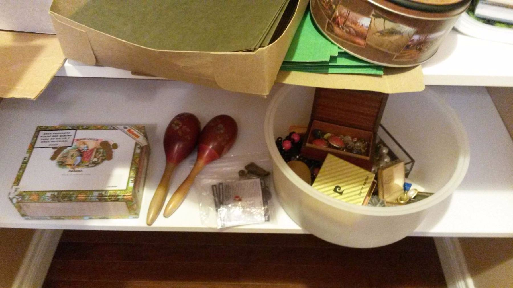Costume Jewellery Cigar Box, w/ misc.