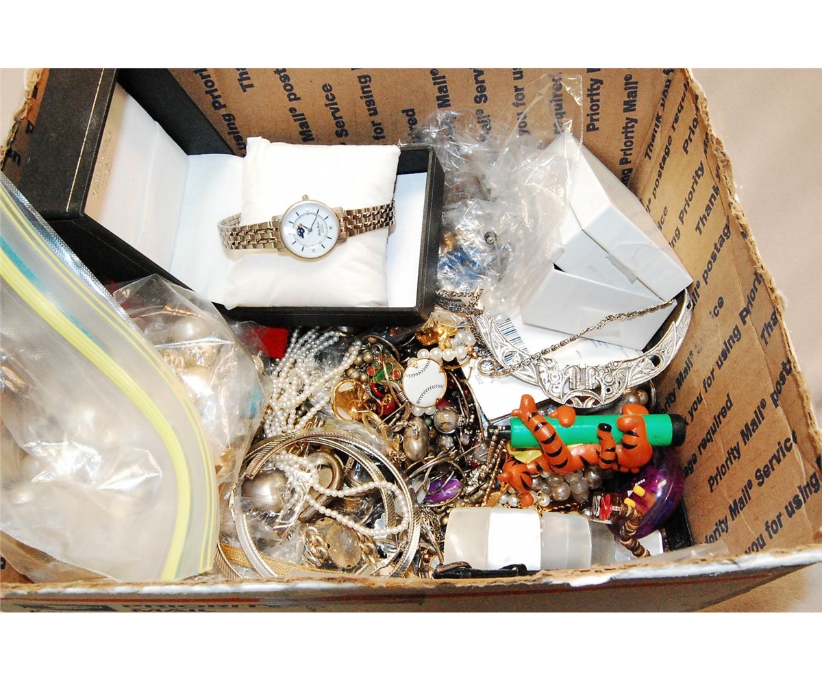 Costume Jewelry And Smalls Treasure Hunt Lot, Almost Fills A USPS Priority Box