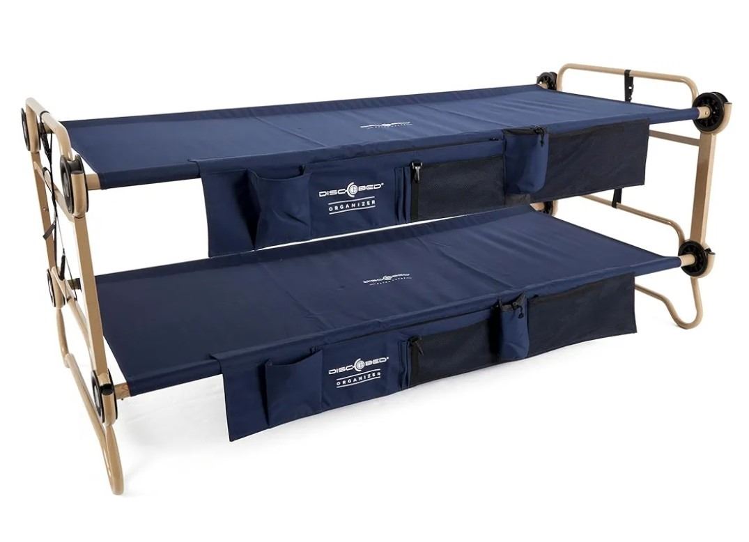 Disc-O-Bed Large, Cam-O-Bunk, Benchable Double Cot With Storage Organizer, Navy New Condition