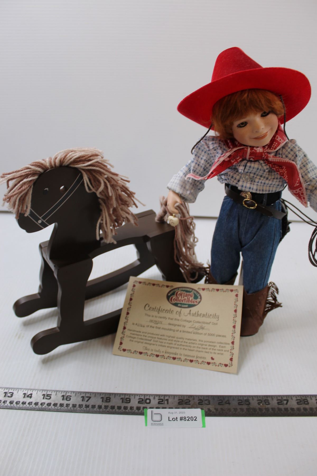 Cottage Collectables "Howdy" Doll w/ Certificate and Rocking Horse