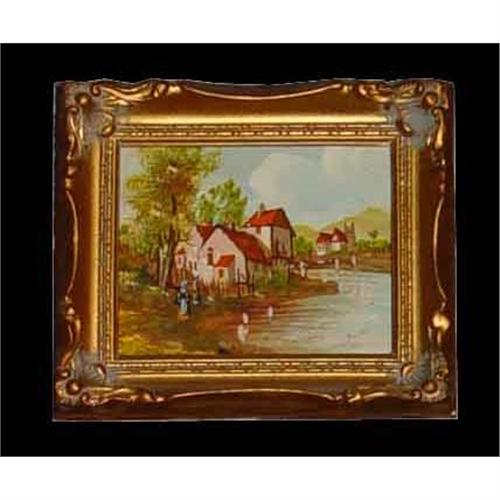 <tr><td>Title:Cottage Farm Lake Landscape Oil Painting</td></tr>