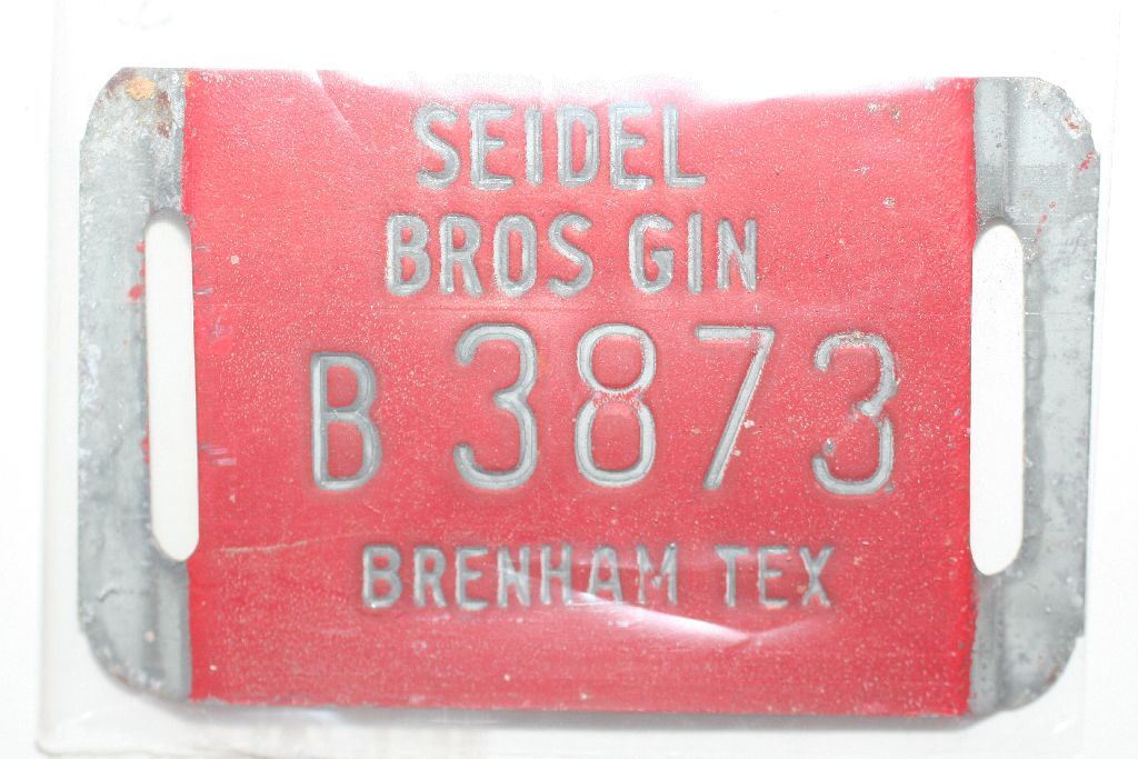 This lot is a cotton bale metal tag from seidel bros gin, brenham, tx. (b3873)