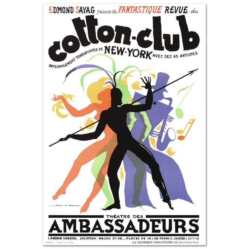 "Cotton Club" is a hand pulled lithograph on paper by the RE Society, image originally by Jean Mercier. Includes letter of authenticity. Measures approx. 17.5" x 26" (image).
