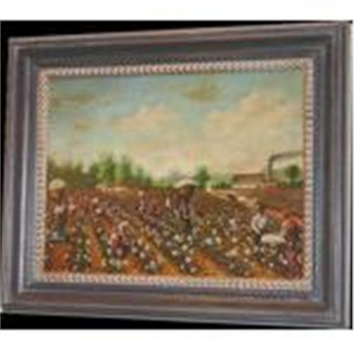 Scenic view in the Cotton Fields back home. Captures the stress and rough beauty of a bygone day. Wonderful compostion and details. Signed by R. Soyer. A beautifully detailed oil painting by a contemporary artist. Handsome handcrafted frame with wonderful details. Dimensions are of the painting. 12x16 Framed oil on board - $395. 24x30 Framed oil on canvas - $895.