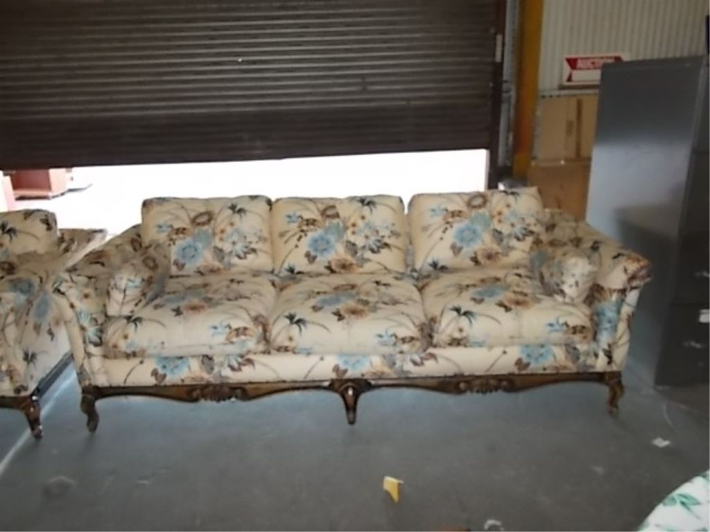 Cotton Floral Sofa Wood Trimmed approx 84" long condition is good