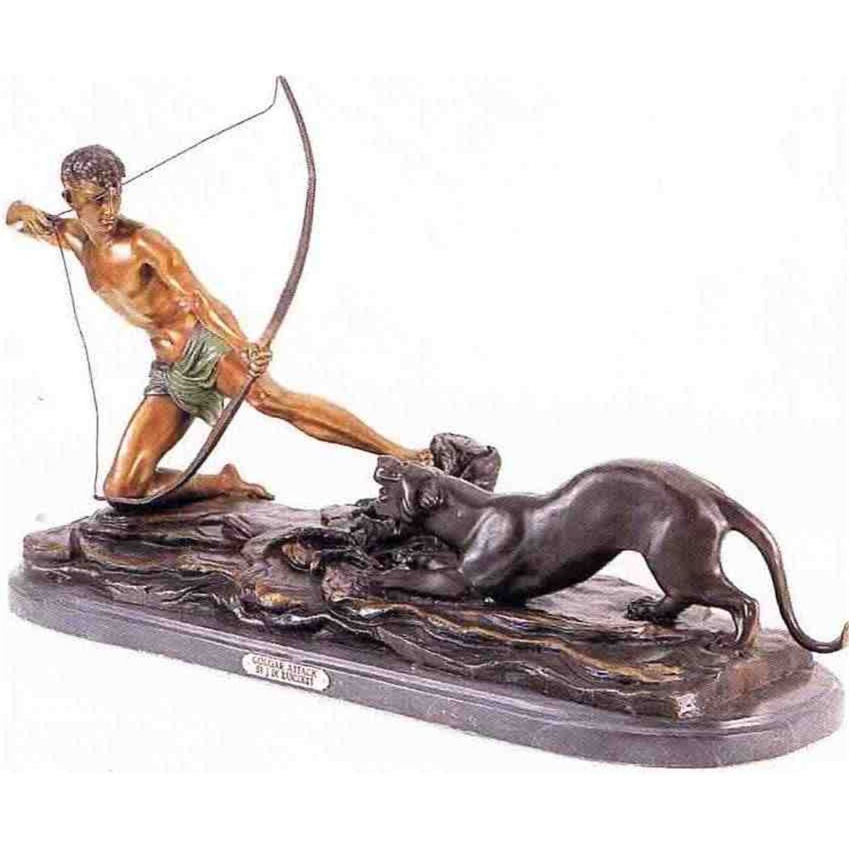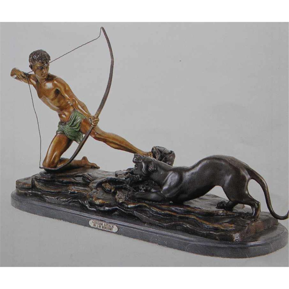 "Cougar Attack" Bronze Sculpture - After Rancoulet - Beautiful Color Patina/Museum Brown Finish - Mounted On A Fine Italian Marble Base - Beautifully Detailed - Signed - Mint Condition - 16"H X 35"W - Lost Wax Cast Bronze
