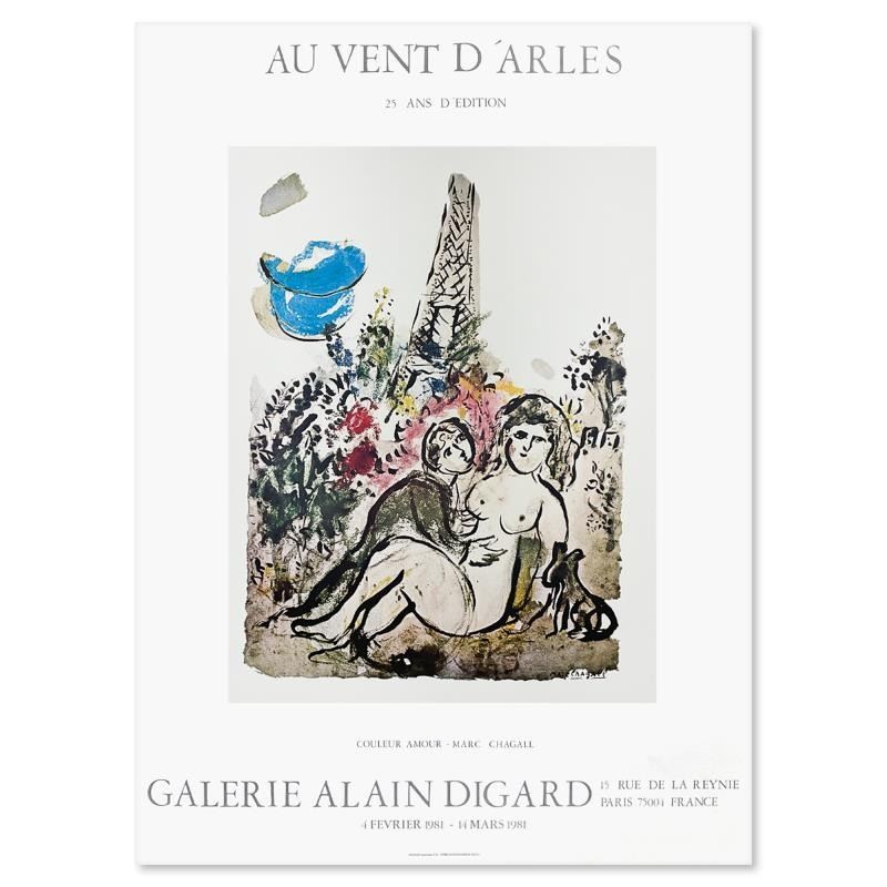 "Couleur Amour" is a vintage poster on paper by Marc Chagall (1887-1985). Measures approx. 22.5" x 30" (image). There may be very minor imperfections on the paper but the piece is in good condition.