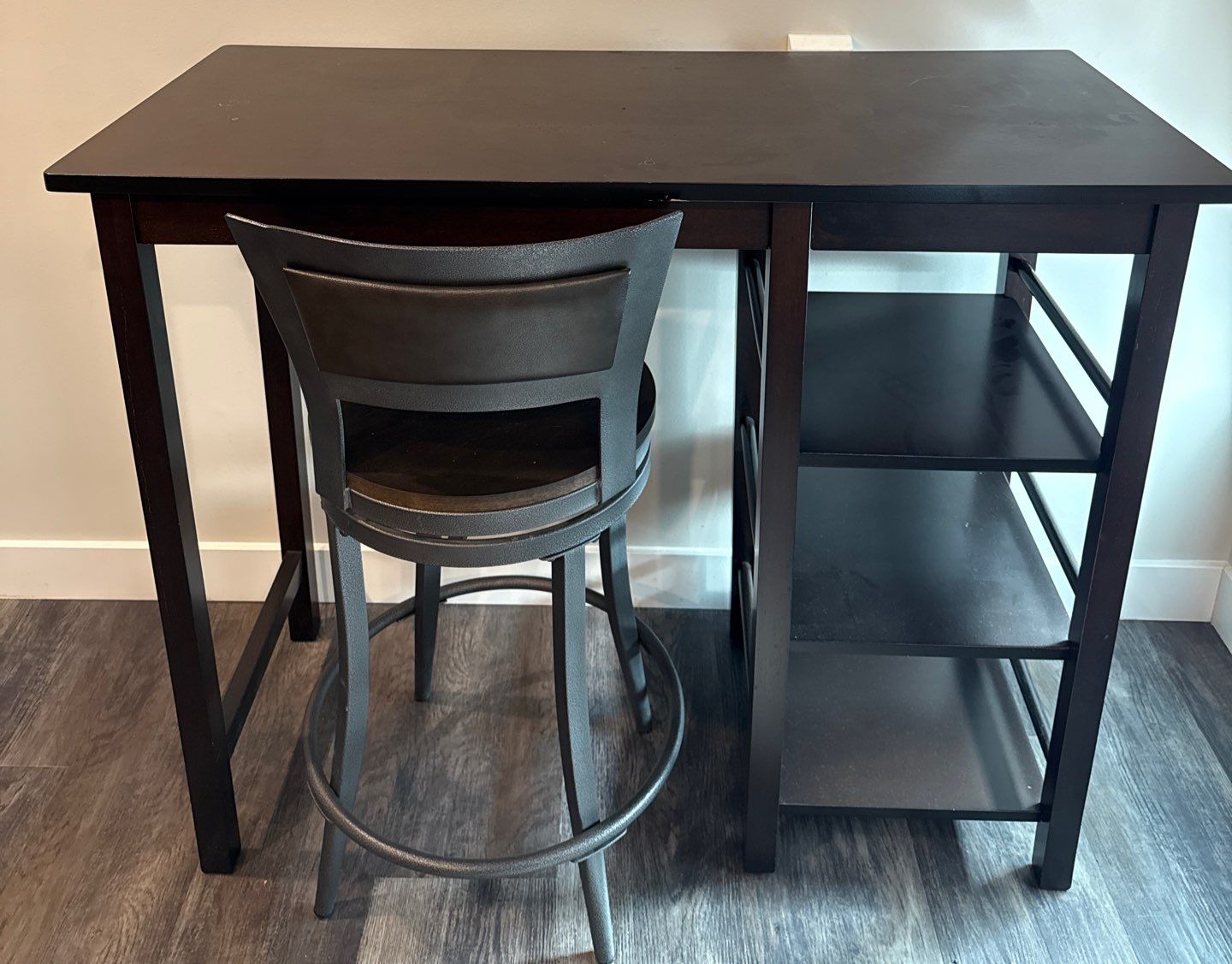 Counter Height Bar Table w/ Stool/Chair (Three Shelves)