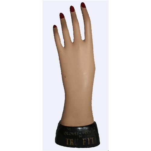 Counter Model of Lady's Hand. Sits on 2.5" x 3" oval base marked Gloves - Mittens by Tru Fit. Stands approximately 11" T..