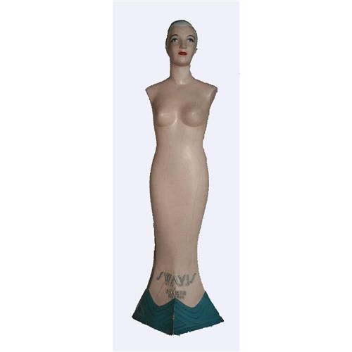 Counter Model - Female Figure - Advertising Swavis - A Charis Product.  Crazing over body.  Molded hair.  Painted blue eyes, red lips, black brows.  Some soiling commensurate with age.  Approximately 30" T.