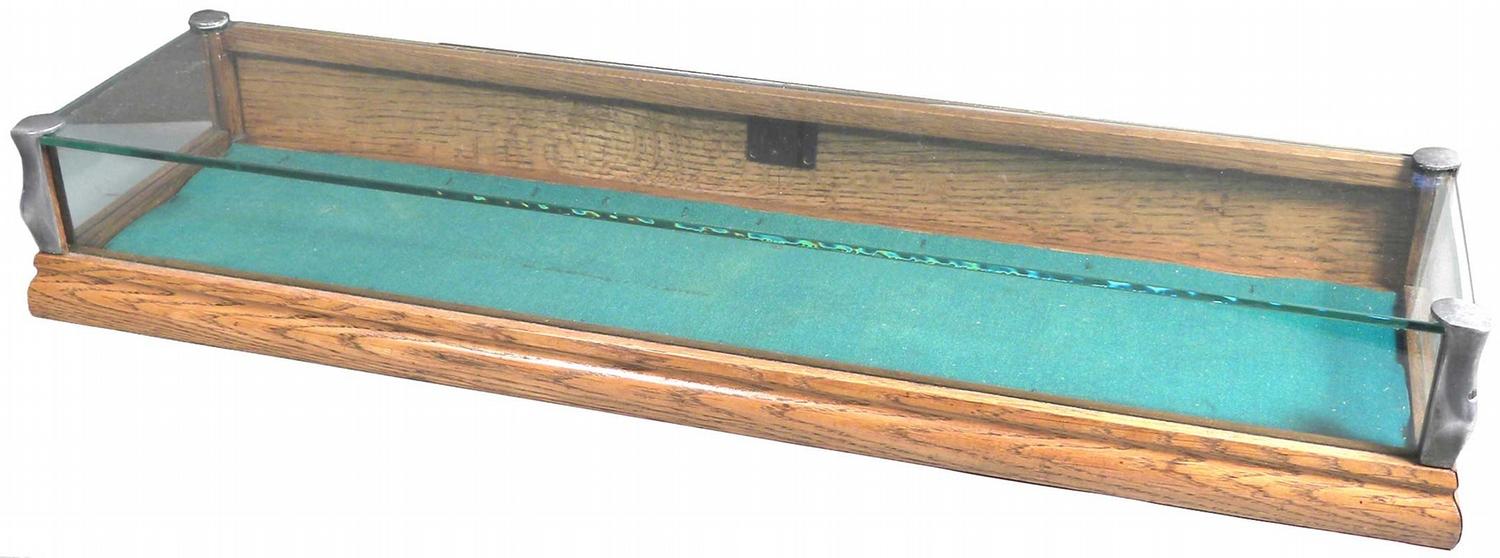 Counter Top Display Showcase. Oak and glass with metal corners. 31 1/2 X 4 1/2 X 8 1/2 inches.