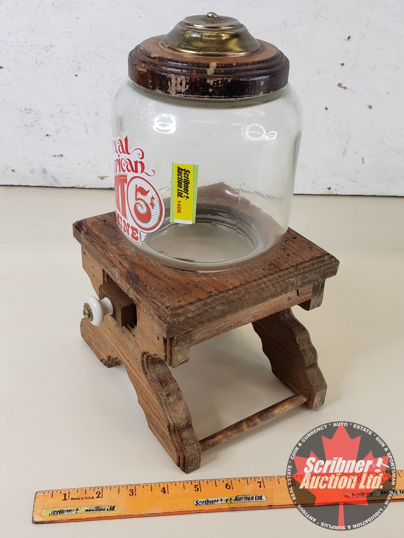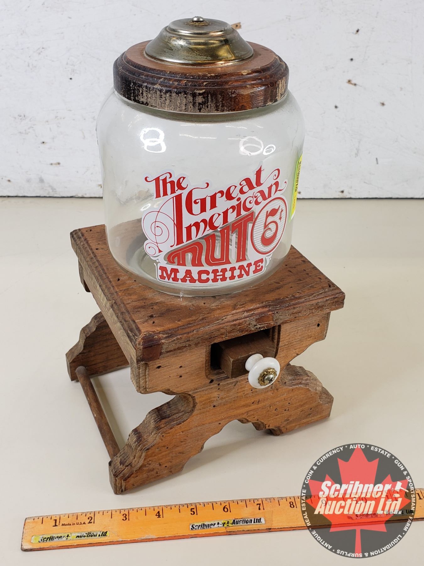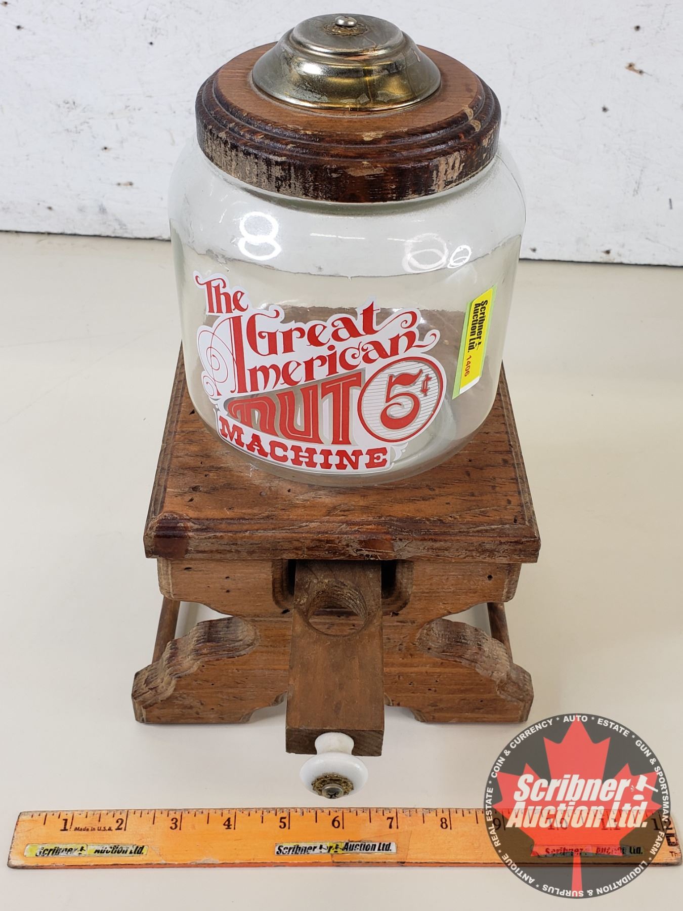 Counter Top Nut Dispenser "The Greatest American Nut Machine 5 Cent" (13"H x 8"W x 6-1/2"D) (SEE PICS!)