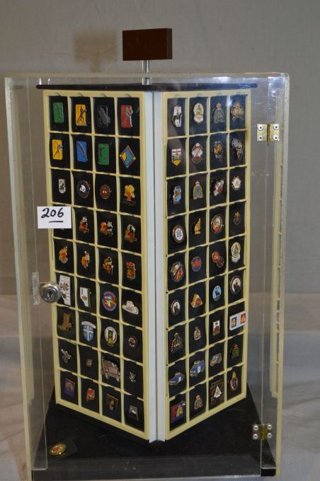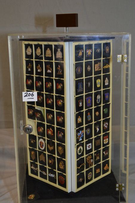 Counter Top Plastic Rotary Display Cabinet : Contents of Over One Hundred Collector's Pins - RCMP & Others - locked, no key but great collection !!!
