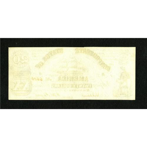 <B>Counterfeit CT-18/107 $20 1861.</B></I> This is a well executed lithograph counterfeit with written signatures and a brown serial number that has the FA plate letter. Rarity 7, estimated 26 - 50 to exist, see <I>Counterfeit Currency of the Confederate States of America,</B></I> by George R. Tremmel. <B>Choice Crisp Uncirculated.</B></I><BR><BR><b>Shipping:</b> Coins & Currency (<a target="_blank" href="http://www.heritageauctions.com/common/shipping.php">view shipping information</a>)