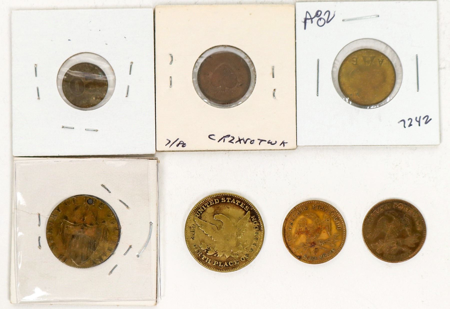 Nice variety of eight counters: George Washington (3); Duke of York; Ace of Clubs; others.