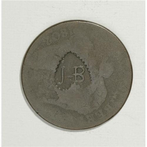 <B>Counterstamped Group Lot, Letters and Hearts.</B></I> This two-piece lot consists of early U.S. large cents counterstamped with tooth border hearts with the letters J B and H.I. An interesting pair of counterstamps that require further research to properly identify. The consignor has attributed these to the island of Martinique, which may not be so. These should draw plenty of interest from many segments in the collecting field. The current market value is about $150.<BR><BR><b>Shipping:</b> Coin/Currency (<a target="_blank" href="http://www.heritageauctions.com/common/shipping.php">view shipping information</a>)