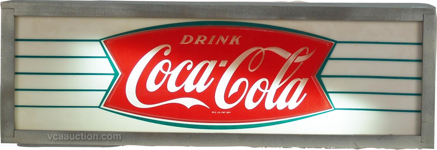 Countertop Wood Box & Plastic Light-Up Coca Cola Sign w/ "fishtail" symbol - 25" x 8"