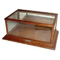 Countertop showcase w/hinged back door, oak w/original finish, maker's tag reads Chas. Bodach-Chicago, Exc. condition, 24.5"W x 10"H.