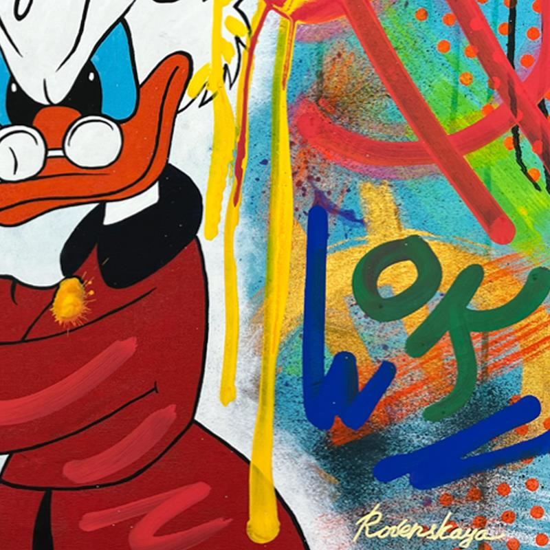 Counting Money is a one-of-a-kind mixed media on deckle edge paper by Nastya Rovenskaya; hand signed by the artist. This piece comes custom framed and includes letter of authenticity. Measures approximately 30 x 36.5 (framed), 24 x 30.5 (image).