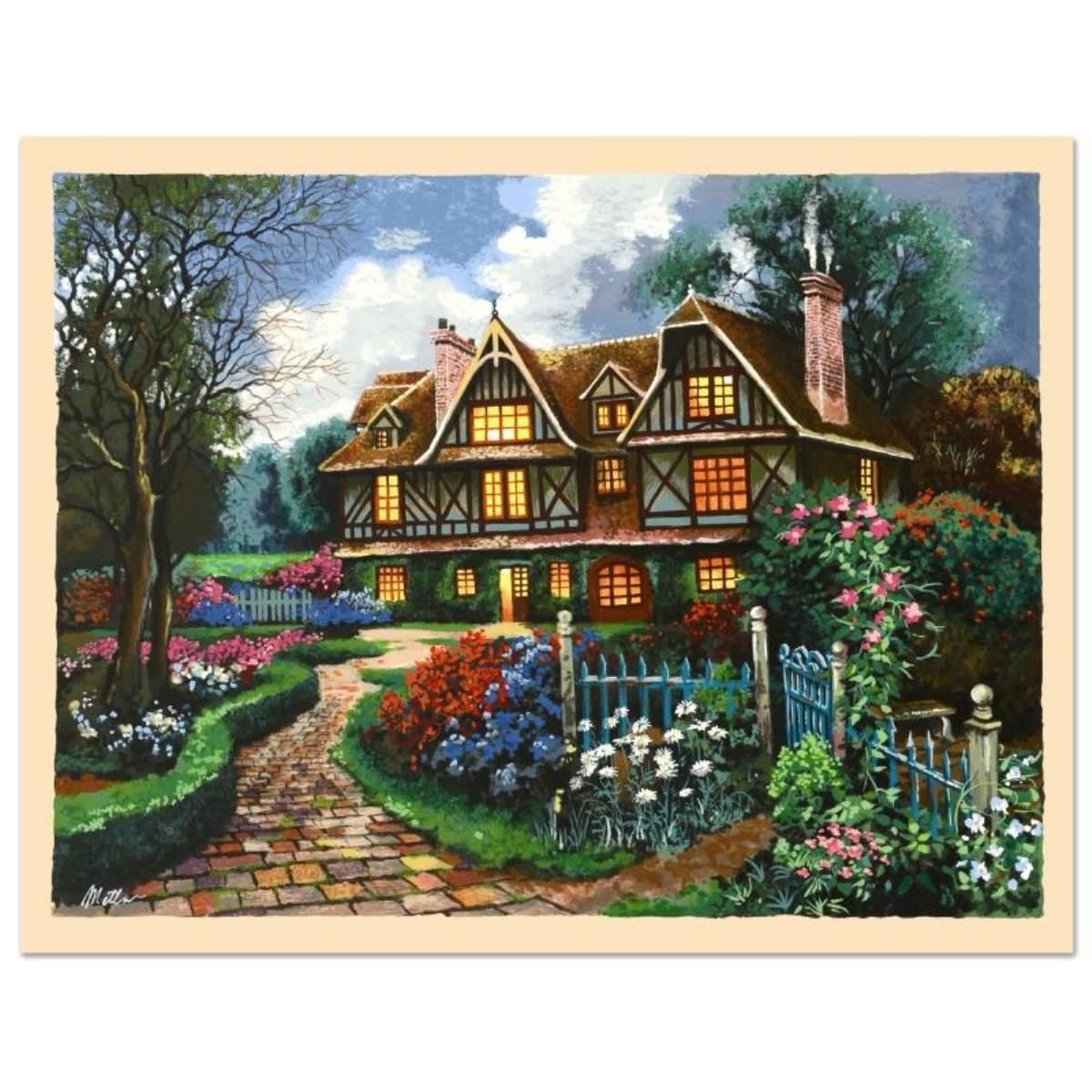 Country Cottage by Metlan, Anatoly. "Country Cottage" is a limited edition serigraph on paper by Anatoly Metlan, numbered and hand signed by the artist. Includes Certificate of Authenticity. Measures approx. 26" x 20" (with border), 24" x 18" (image).