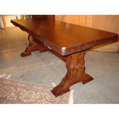 </font></strong>This is a refinished French farm table with plank top and trestle base. It is European Oak and in very good condition.
