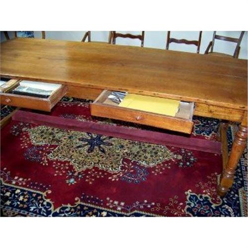 French Country Desk/Dining table made of French Cherry with two drawers centered on one side. Great Antique