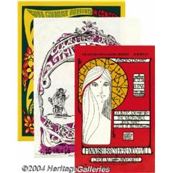 <B>Country Joe and the Fish Handbills Group (Various Publishers, 1966).</B></I> One of the original "protest bands" was the San Francisco Bay Area's legendary Country Joe and the Fish. Their lyrics went right to the heart of the matter, whether it was Vietnam, drugs, or racism. All driven by some of the most psychedelic music of the day, these three handbills are from various venues around San Francisco. The first is from October, 1966, and is from a Berkeley venue called the Jabberwock. It features art by Underground legend Joel Beck. The second is from January, 1967, at the Finnish Brotherhood Hall in Berkeley. The third is from June, 1967, at the Oakland Auditorium, when they played with the Young Rascals, the Sons of Champlin, and the Grass Roots! All three are in Excellent condition. <BR><BR><B>Important notice:</B> Heritage usually auctions material at the rate of 200-250 lots per hour. On some occasions eBay Live bid software or the Internet may not be able to keep up with the pace of the auction. We recommend placing a realistic absentee bid now as insurance to avoid disappointment. Occasionally the auctioneer may eliminate or reject an eBay Live bid, and the auctioneer may also reopen a lot after the close of the eBay live bidding (usually because we missed an audience bid), and may reject your bid even if it shows you as the winning bidder. By bidding via eBay Live, you agree that Heritage may award the lot to another bidder at its sole discretion under the circumstances described above or any other reasonable circumstances. Since eBay bids are not shown to us until we open the lot on the floor, we treat those bids just like floor bids. In most cases the floor responds before the eBay bid is presented to us, due to Internet lag time, so for consistency we have made it a policy that floor bids are always considered first over tie eBay live bids. Also please note that all Heritage lots purchased through eBay Live carry a 24.5% Buyer's Premium. Please make sure you read the Terms and Conditions before you bid.