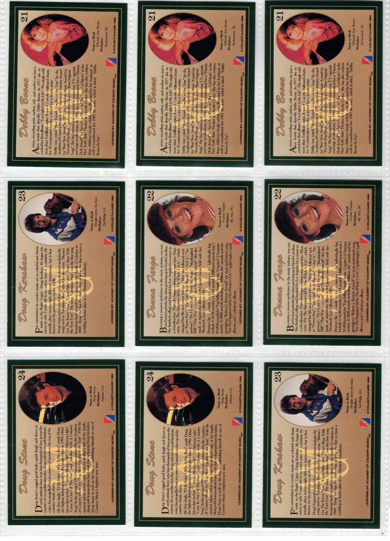 Country Music Stars Trading Cards - 20 Cards - Duplicates