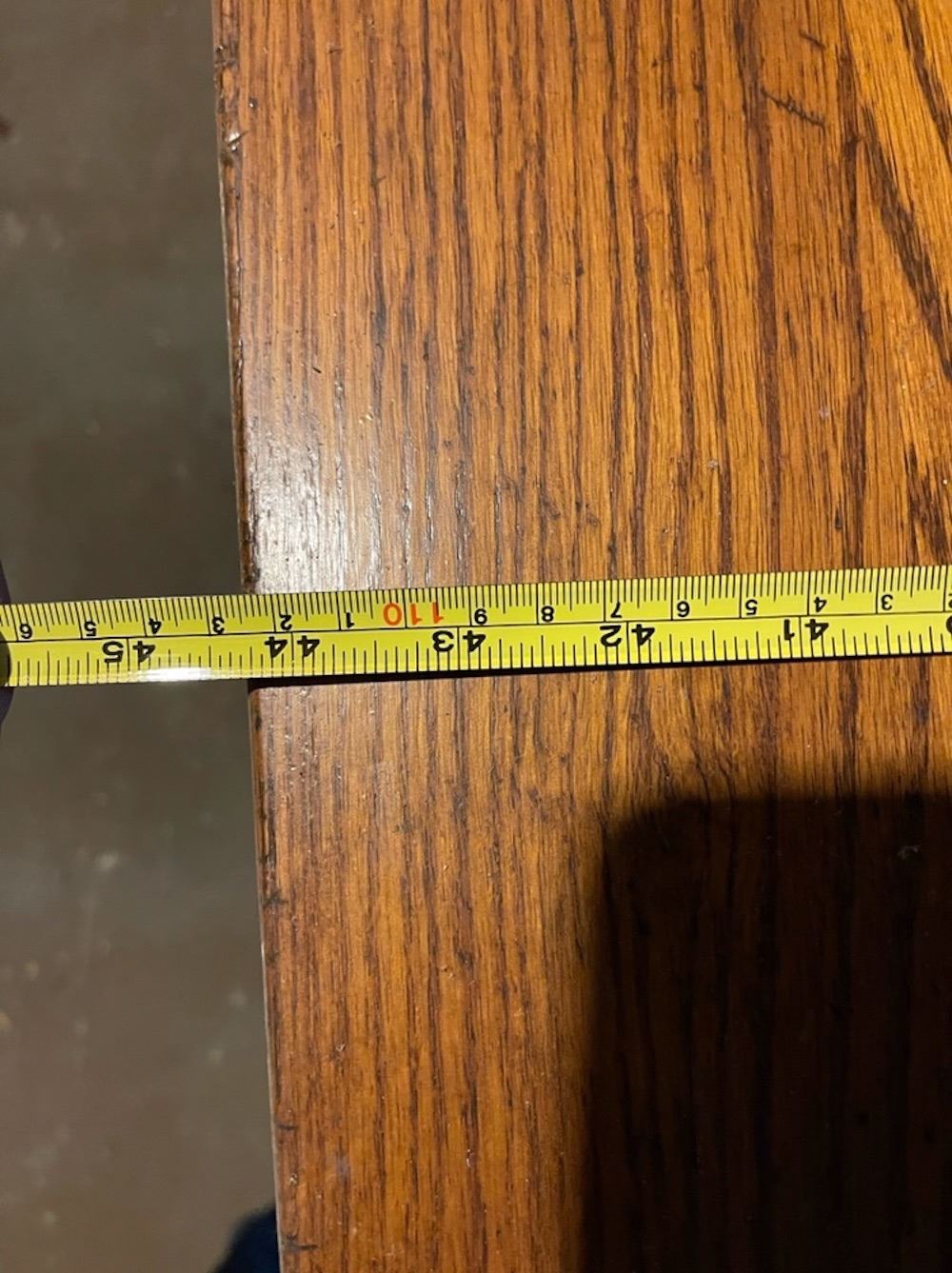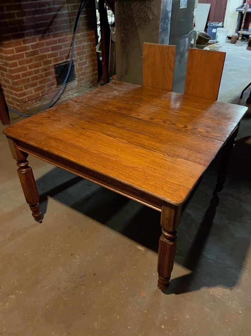 Country oak dining table with 2 leaves, measures approx. 44 inches wide, each leaf measures approx. 12 inches wide, from the lifetime collection.